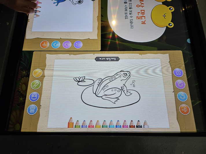 개구리 전시관에 들어가서 개구리도 색칠해주고, 물 위에 비친 나무들을 바라보며 완벽한 여유를 즐겼어요.